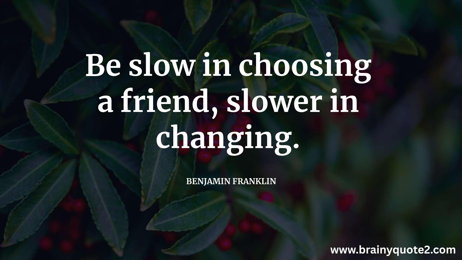 Be slow in choosing a friend, slower in changing.