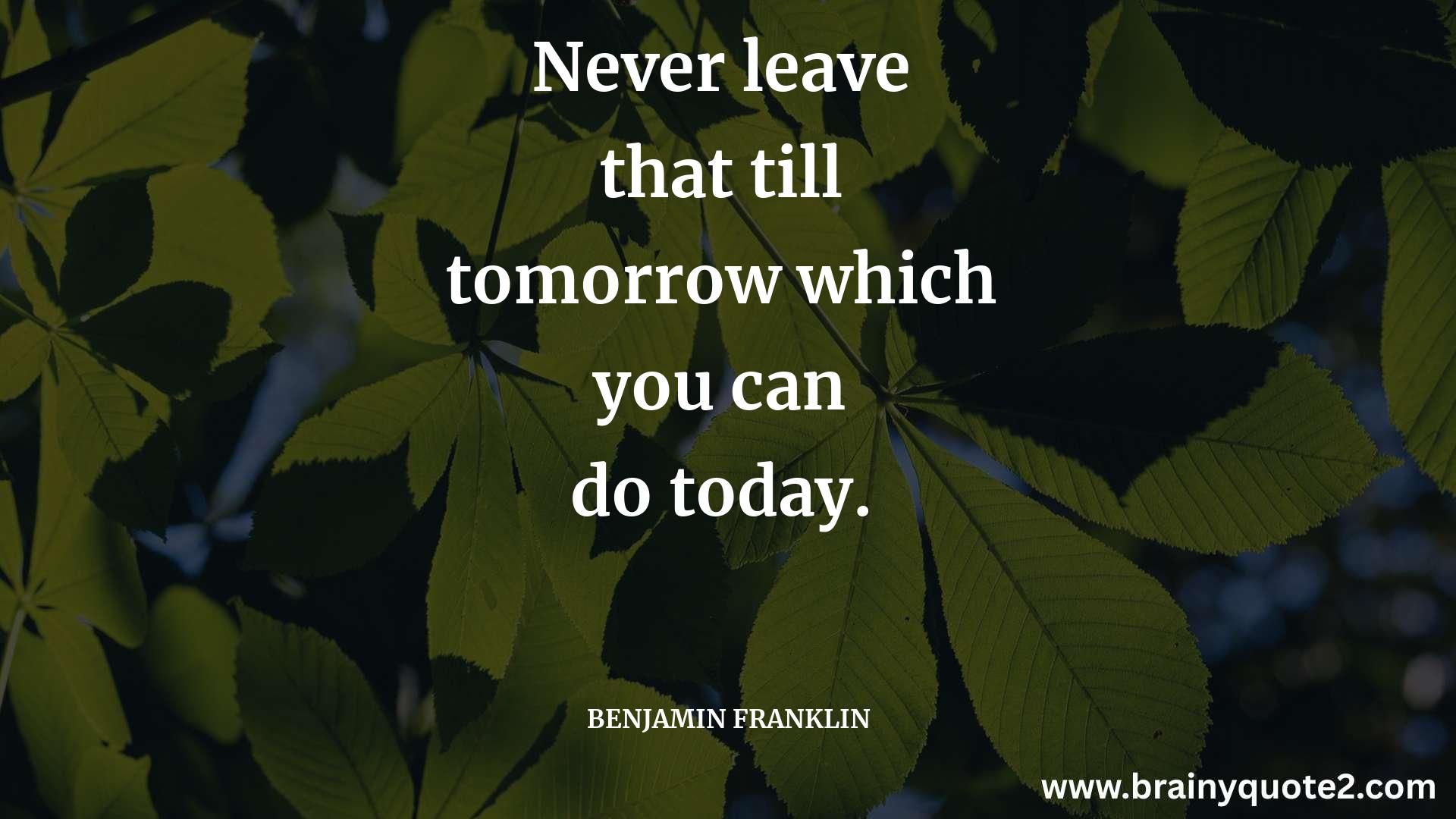 Never leave that till tomorrow which you can do today.