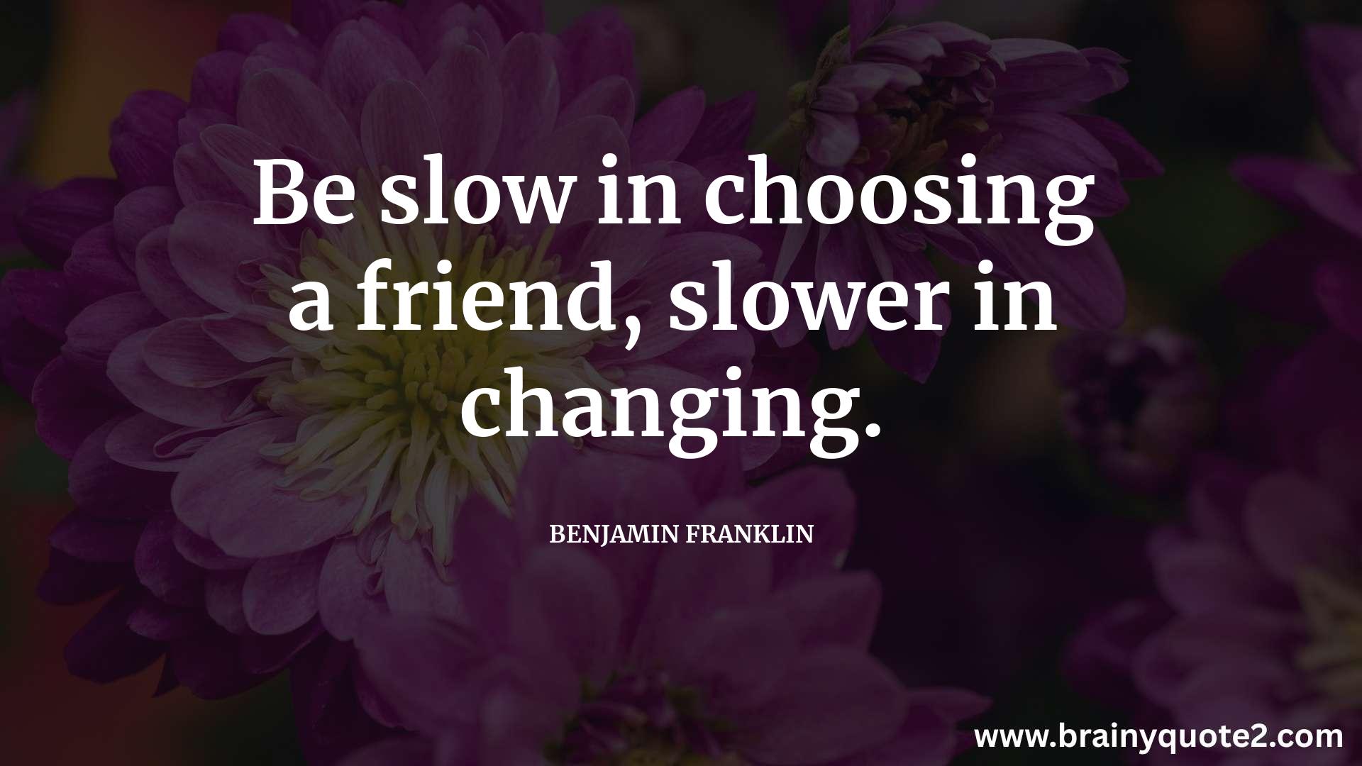 Be slow in choosing a friend, slower in changing.