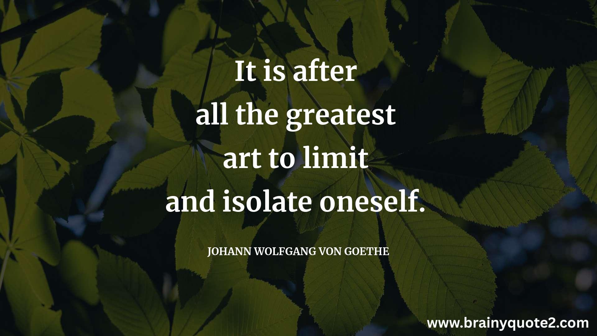 It is after all the greatest art to limit and isolate oneself.