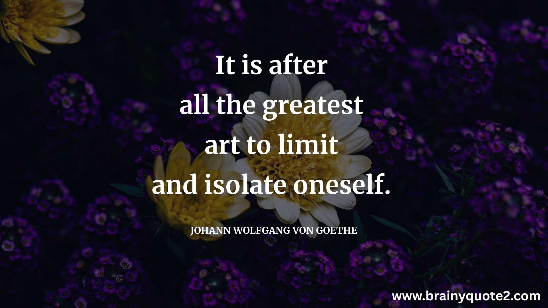 It is after all the greatest art to limit and isolate oneself.