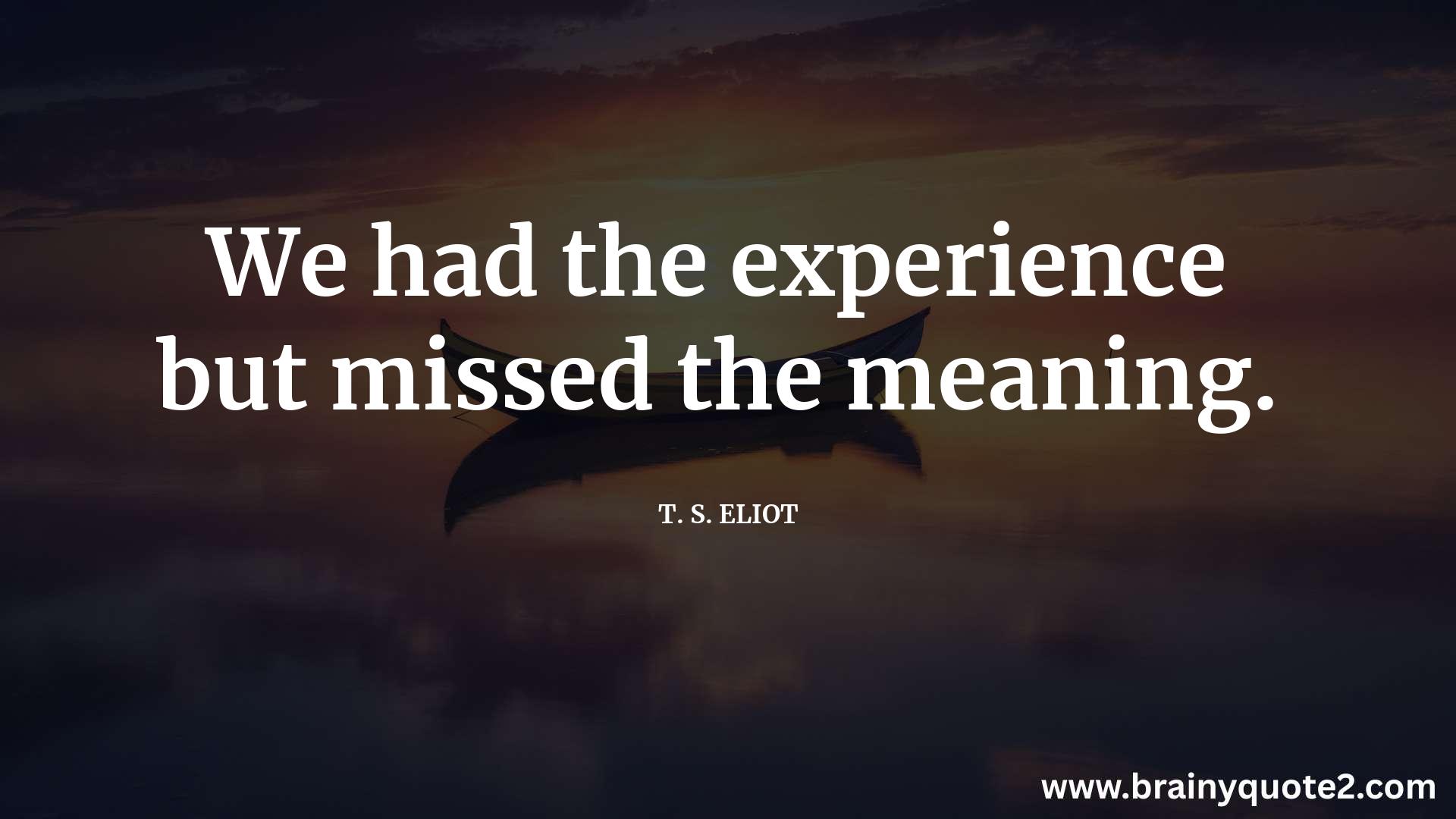 We had the experience but missed the meaning.